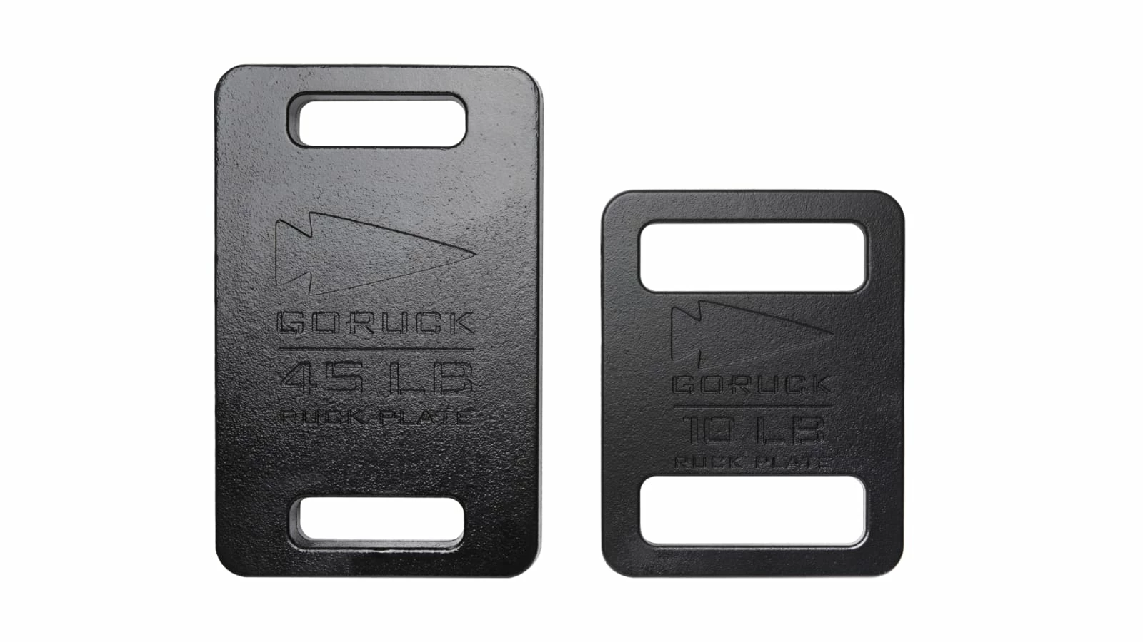 - 45LB – 9.5″ x 15″ x 1.38″ – For users looking to train harder than they perform (i.e., train with 45LB, use 30 LB in Challenge), and those already experienced/comfortable rucking 30 LBS. Again, please note that 45 LB Ruck Plates cannot be placed into the plate-dedicated pocket of the Rucker, and must go in the interior elastic pocket instead; making them better suited for upright rucking rather than GORUCK challenges.