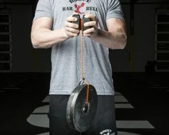 The design includes a 4” diameter roller with a 4 ft. long climbing-grade accessory cord and a small snap clip. Connected to a weight plate or loading pin (not included), the twisting action of the Twist Yo’ Wrist is similar to opening a well-sealed pickle jar with one hand on the lid and the other on the base. By winding up the cord and then allowing it to unwind under control, the user is able to train both concentrically and eccentrically, with radial and ulnar deviation working muscles from the elbows to the fingertips.