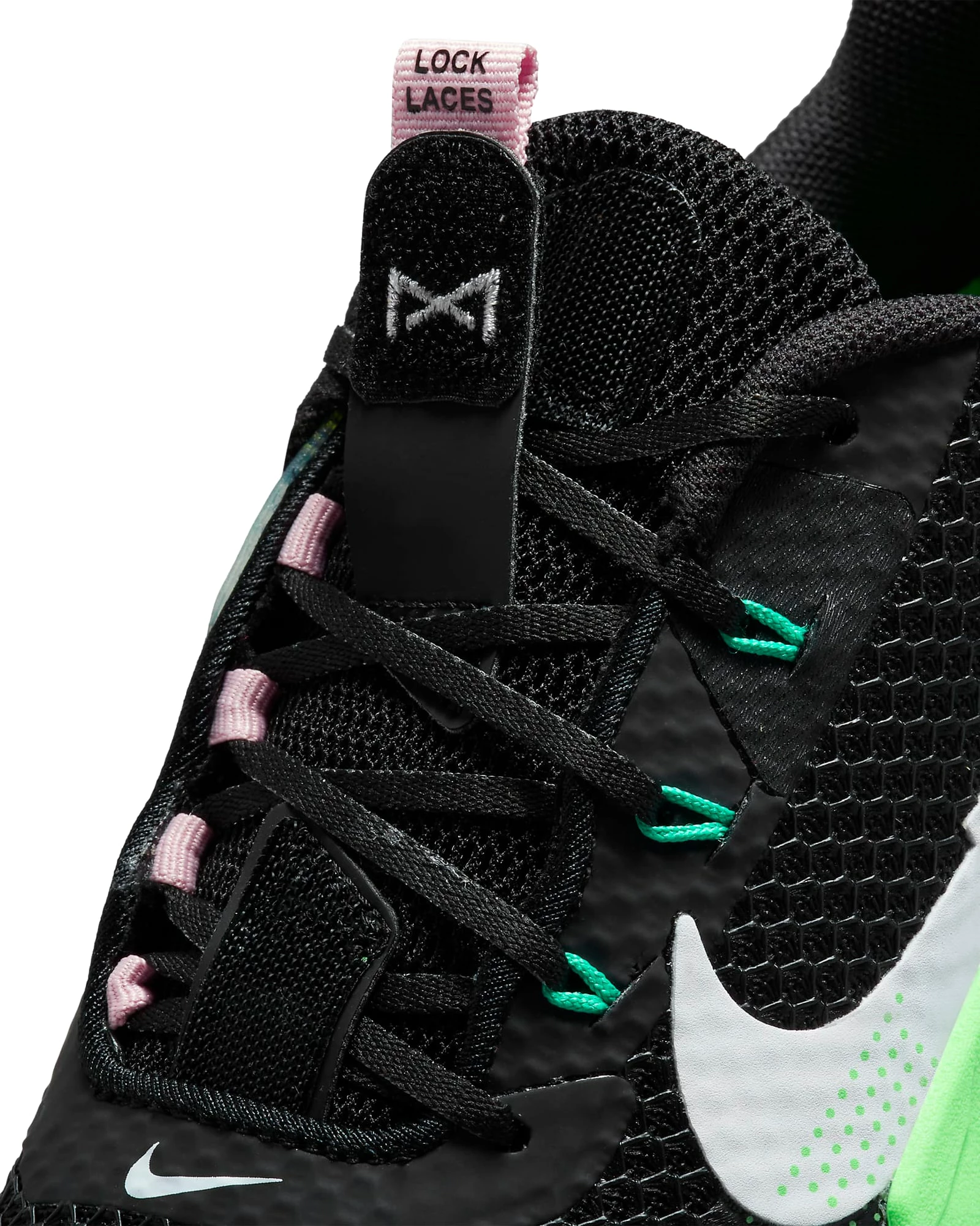 Representing a new gold standard in weight training, the Nike Women’s Metcon 7 is even tougher than previous models, with React foam for optimal comfort and lock-down lace tabs to prevent untying during high-intensity training. The shoe’s wide, flat, and flexible heel also now includes an inner plate that distributes weight from edge to edge for improved stability, while revamped rubber wraps along the arch offer better traction on rope climbs.