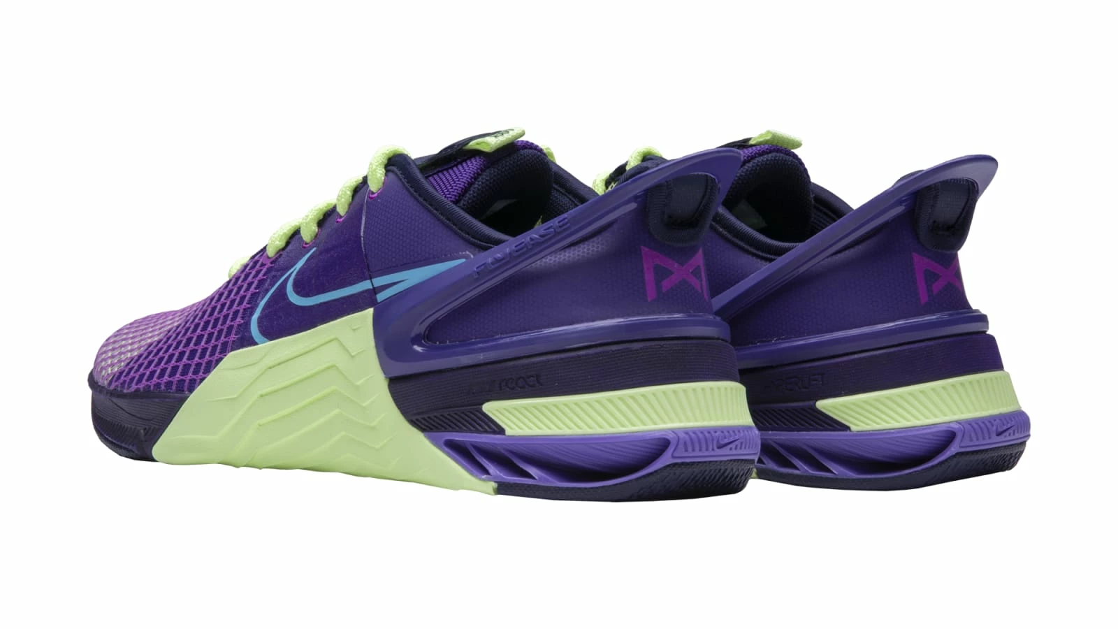 The “FlyEase” variation of Nike’s Metcon 8 men’s cross-training shoe features a unique, flexible heel that allows you to step into the shoe without using your hands; the heel collapses when you step in, then snaps back into place to secure the foot.