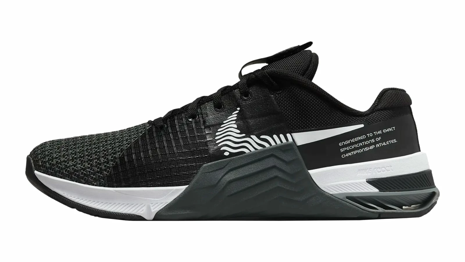 The Metcon 8’s lightweight mesh and strategically textured overlays keep your feet cool without sacrificing durability. Rubber tread on the outsole and up the side of the shoe provides directional traction from the training room floor to the pavement, and flywire cables integrate with the laces to secure the midfoot.