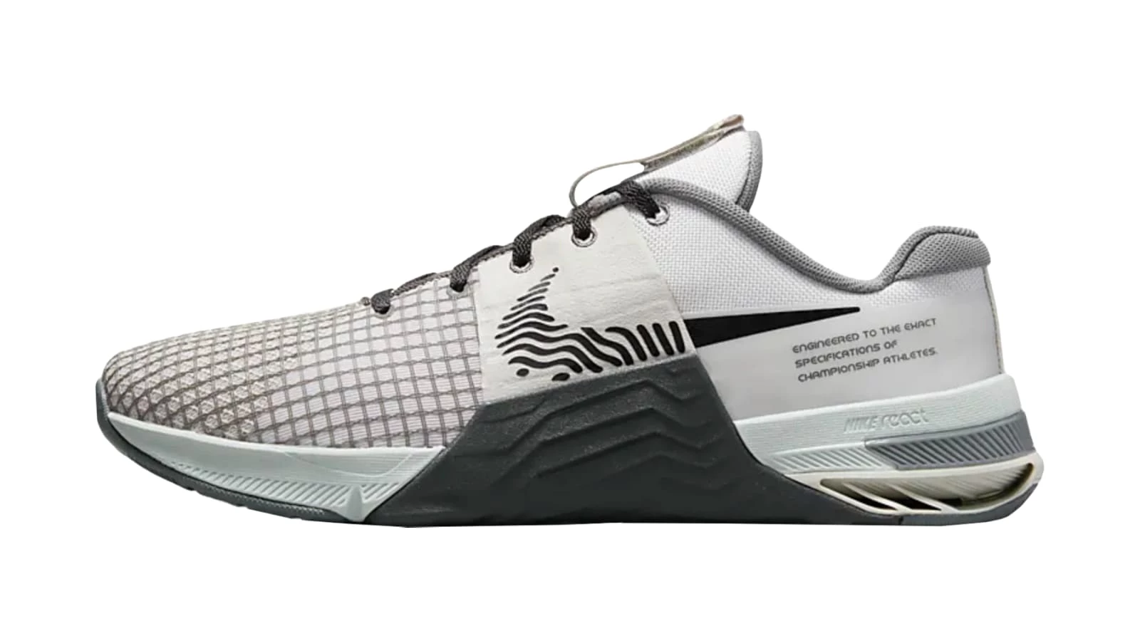 As it says right on the shoe itself, the Nike Metcon 8 is engineered to the exact specifications of championship athletes. Featuring a lighter upper with improved airflow, this model still includes many of the most popular elements of the Metcon cross-training series: React foam for optimal comfort and cushioning, grooves in the sole to let your forefoot bend naturally, and lock-down lace tabs to prevent untying during high-intensity training. The shoe’s wide, flat, and flexible heel includes an inner plate that distributes weight from edge to edge for added stability, and rubber wraps along the arch offer better traction on rope climbs.