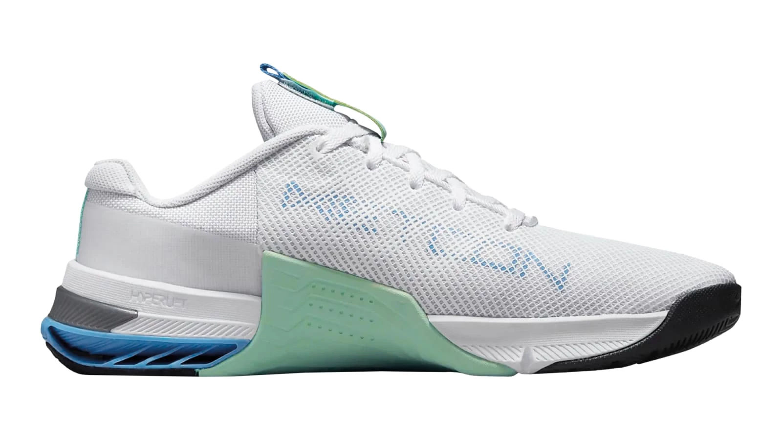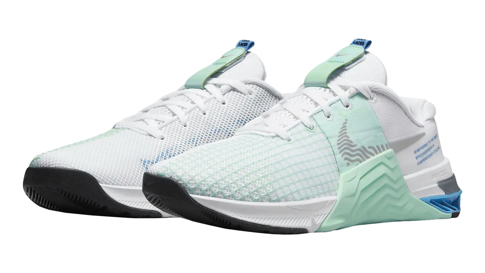 The Metcon 8’s lightweight mesh and strategically textured overlays keep your feet cool without sacrificing durability. Rubber tread on the outsole and up the side of the shoe provides directional traction from the training room floor to the pavement, and flywire cables integrate with the laces to secure the midfoot.