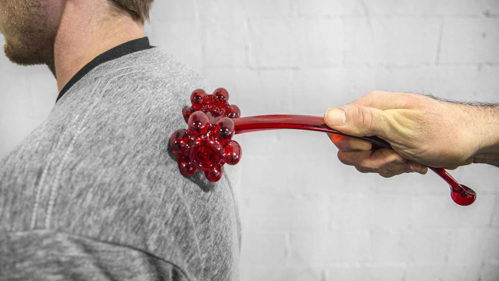 This innovative rolling massager is equipped with two knobbed wheels that actually feel like they vibrate as they are rolled across the back giving a delightful, relaxing massage.