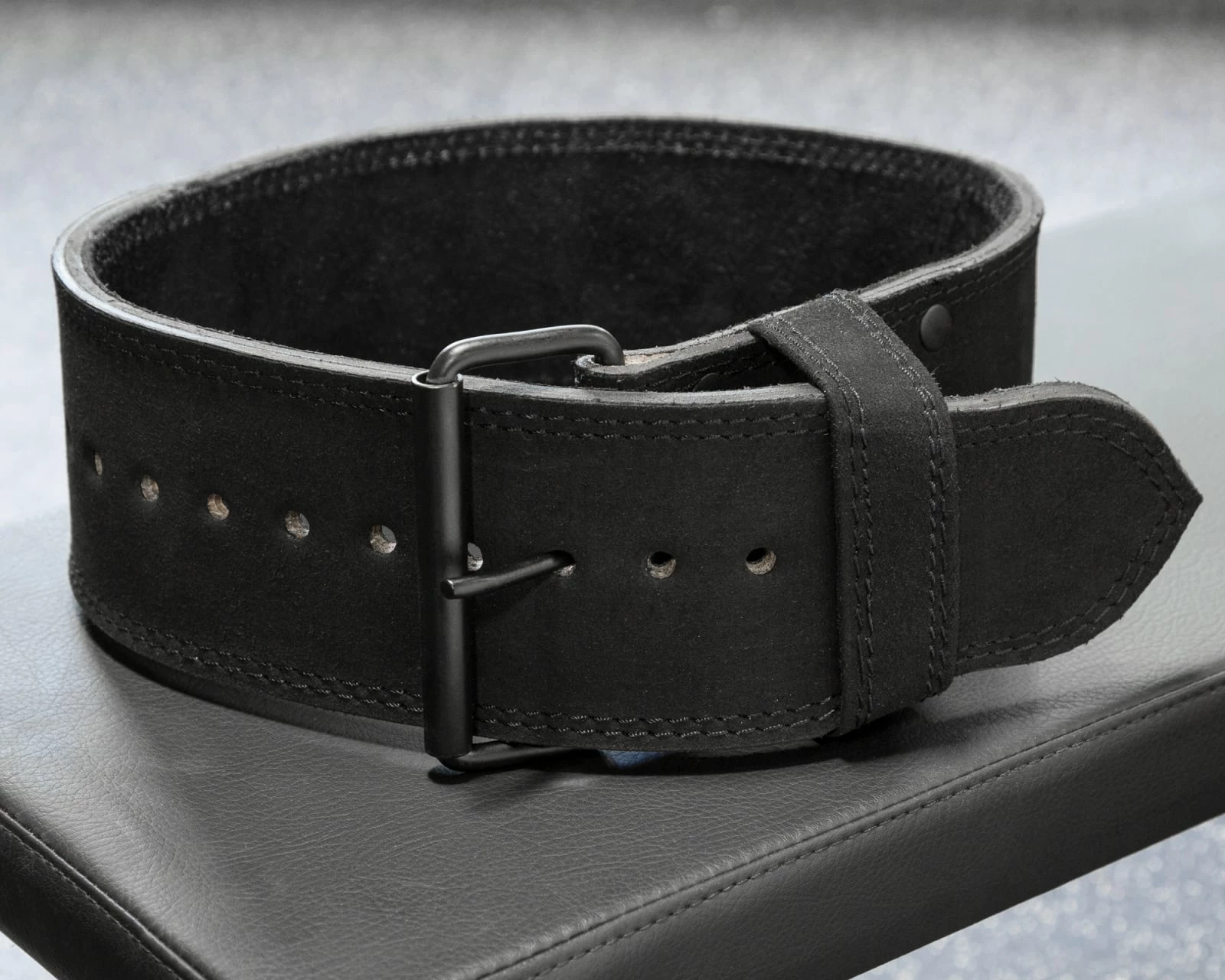 Rogue’s Echo Lifting Belt is made from genuine leather and measures in 4″ width and 10MM in thickness,* with five length options to choose from. All sizes of the belt include 10 precision-spaced holes and a single prong buckle design for easy custom tightening and optimal comfort and support. The leather on the Echo Belt can run pretty stiff out of the gate and may need some break-in time, but you’ll never need to worry about its reliability for securing the abdominal muscles and lower back on a wide variety of lifts.