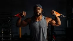 The patent pending design uses Sling Shot material that stretches, allowing a greater range of motion compared to standard attachments. The stretch of the material creates a banded feeling for a greater “pump” as you can get deeper in the movements, promoting greater muscle contraction and better core stabilization.